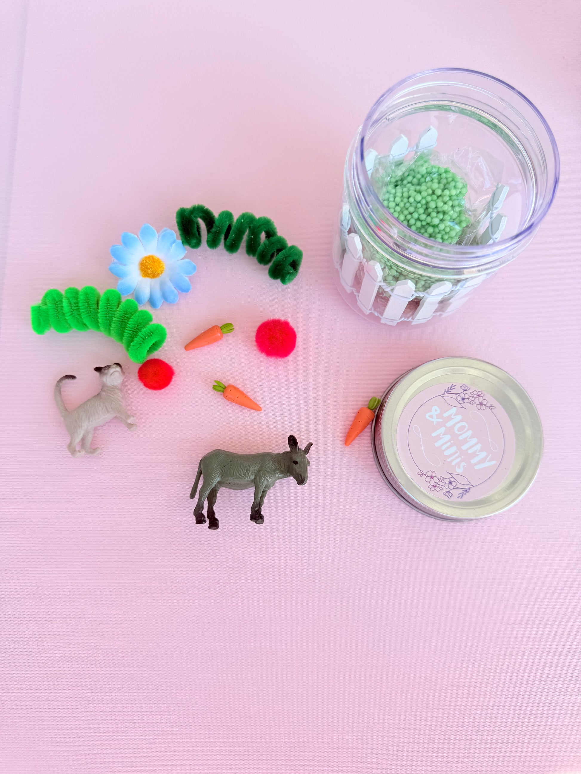 Whether it’s planting carrots, caring for animals, or exploring the sensory textures, this jar encourages imaginative storytelling, fine motor skills, and screen-free play.